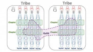 - Gilden (Guilds) fassen wie Chapter eine Gruppe von Mitarbeitenden desselben Fachbereichs zusammen, die sich allerdings über die Grenzen ihrer Tribes hinweg fachlich vernetzen.