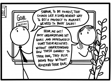 Sharon responded patiently and explained that most organizations set goals and immediately start their activities. And that without understanding how these activities connect to their goals, these organizations risk being busy without achieving their goal.
