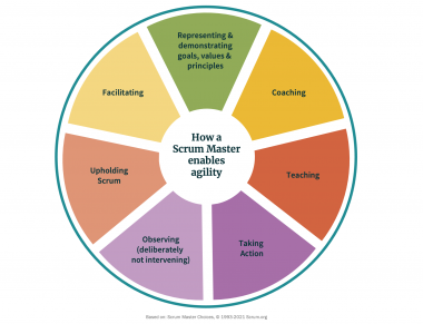 We don't just see ourselves as “agile consultants”. As Scrum Masters, we adopt different stances depending on the situation: coaching Scrum, teaching Scrum, taking action, observing, upholding the Scrum Framework, facilitating as well as representing and demonstrating agile values and principles. As professional Scrum Masters, we enable Scrum teams and managers to independently solve complex challenges.
